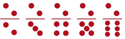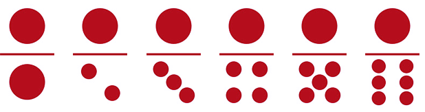 Seri 2 (dua) titik, dengan total 5 kartu dan terdapat dua titik yang besar pada salah satu bagian masing-masing kartu (bagian atas atau bawah):