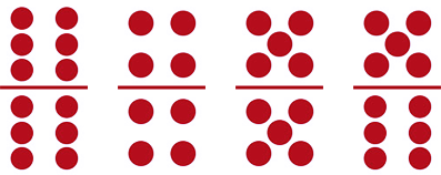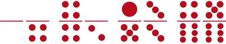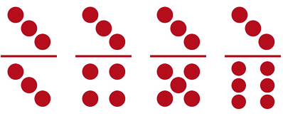 Seri 4 (empat) kartu, berjumlah 3 kartu dan terdapat 4 titik pada salah satu bagian masing-masing kartu (bagian atas atau bawah):