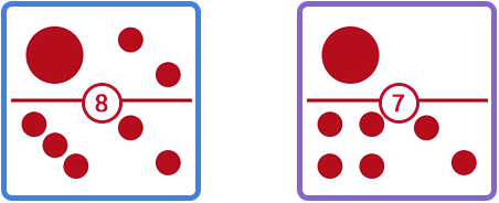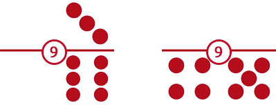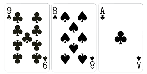 Gambar di bawah ini menunjukkan bahwa pemain di sebelah kiri akan menang karena satu kartunya bernilai 9, sedangkan pemain di sebelah kanan nilai tertinggi satu kartunya adalah 5.