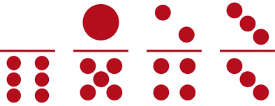 Seri 3 (tiga) titik, berjumlah 4 kartu dan terdapat 3 titik pada salah satu bagian masing-masing kartu (bagian atas atau bawah):