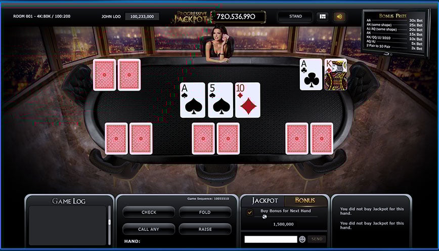 Permainan bergerak searah jarum jam, mulai dari kiri posisi dealer button (pemain yang menang di periode sebelumnya). Secara umum, Sebelum kartu di bagikan semua player akan menaruh ante (ante adalah betting wajib bagi semua pemain sebelum hand dimulai) sesuai dengan nilai yang telah di tentukan pada table list yang tertera sebelum Anda masuk ke permainan.