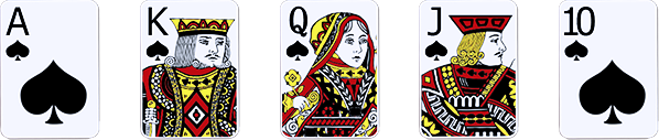 Kombinasi ini terdiri dari Ace, King, Queen, Jack dan Kartu angka 10 dengan lambang kartu yang sama.