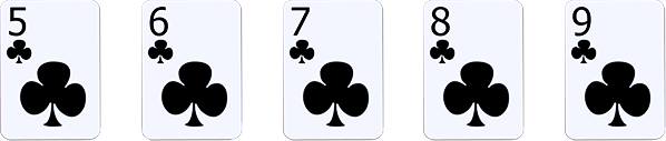 2. Straight Flush : Susunan 5 kartu yang berurutan dengan lambang yang sama