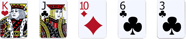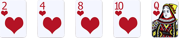 Terdiri dari Ace, King, Queen, Jack, dan Sepuluh dengan suit yang sama.