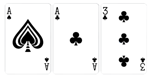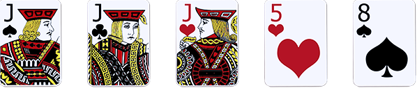 7. Three of a kind : Kombinasi dari 3 kartu dengan angka yang sama dengan 2 kartu lainnya.