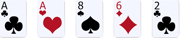 One pair: Dua kartu berperingkat sama, dan tiga kartu sampingan yang tidak terkait.