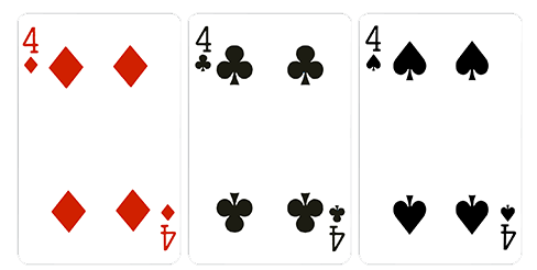 Bila permainan seri: Tiga kartu sama dengan peringkat tertinggi yang memenangkan pot. Dalam permainan kartu komunitas dimana para pemain memiliki tiga kartu sama dengan nilai yang sama, dua kartu sama dengan nilai tertinggi yang menang.