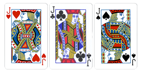 Terdiri dari kombinasi kartu King, Queen atau Jack, dengan simbol kembang bebas (hati, wajik, diamond, kriting)